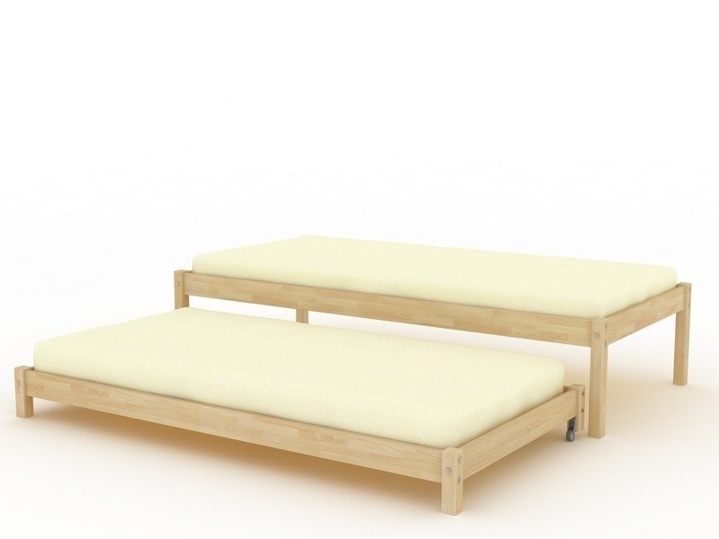Кровать двухъярусная (выкатная) с ортопедическими основаниями. Высота верхнего яруса 450 мм, нижнего - 200мм. Длина верхнего спального места 2000мм, нижнего - 1900мм. Поставляется в разборном виде. Возможно изготовление кроватей с иными размерами спального места.