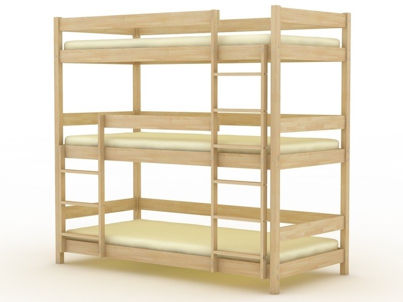 Кровать трехъярусная с ортопедическими основаниями. Высота 1960 мм. Поставляется в разборном виде. Возможно изготовление кровати с иными размерами спального места.
